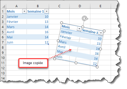 Vous avez aussi la possibilité de pouvoir copier et coller des plages de données en tant qu’image. En cliquant sur la petite flèche du bouton vous vous pouvez copier comme image.